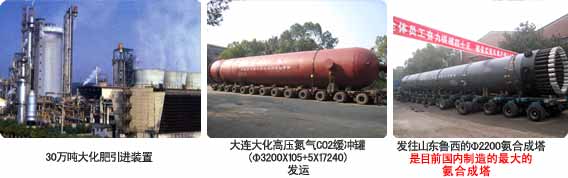 單元設備主要有: (DN600~2200,PN32Mpa)氨合成塔、氨分離器、氨蒸發(fā)器、油分離器、冷交換器、熱交換器、立式氨冷器、臥式氨冷器、軟水加熱器、淋灑式水冷器、套管式水冷器、臥式水冷卻器、廢熱回收器、水解塔、脫硫塔、精餾塔、洗滌塔、變換爐、再生塔、銅洗塔,30萬噸/年合成氨第一和第二廢熱鍋爐、高壓輔助鍋爐A、B、C、D管組、合成氣冷凝冷卻分離器、中壓氣提塔、開工加熱爐等。