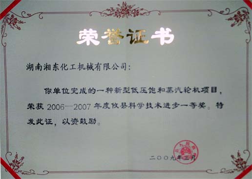 3月31日,從攸縣科技工作大會上獲悉,公司獲得2008年度科技工作先進單位,攸縣知識產(chǎn)權(quán)示范企業(yè)稱號。公司申報的新型低壓飽和蒸汽輪機項目獲得2006-2007年度攸縣科學(xué)技術(shù)進步一等獎;申報的新型熔鉛鍋項目獲得2006-2007年度攸縣科學(xué)技術(shù)進步三等獎。