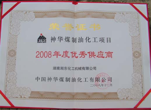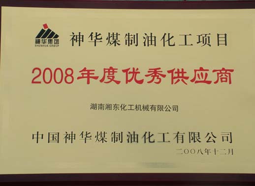 5月25日,從北京中國(guó)神華集團(tuán)傳來(lái)喜訊,我公司獲得中國(guó)神華煤制油化工項(xiàng)目2008年度“優(yōu)秀供應(yīng)商”稱(chēng)號(hào)。
