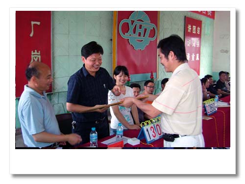 現(xiàn)場(chǎng)觀眾積極參與答題的熱鬧場(chǎng)面  生產(chǎn)副總經(jīng)理姜衡陽(yáng)為冠軍組頒獎(jiǎng)