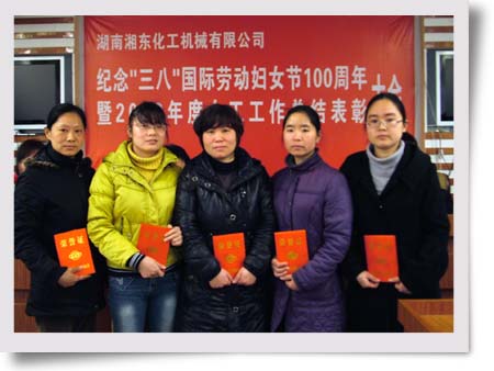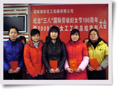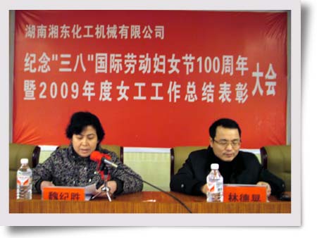 春回大地,萬物復(fù)蘇。在這春光明媚的日子里,湖南湘東化工機(jī)械有限公司召開2009年度女職工工作總結(jié)大會(huì),隆重紀(jì)念百年“三八”國際勞動(dòng)?jì)D女節(jié)。
