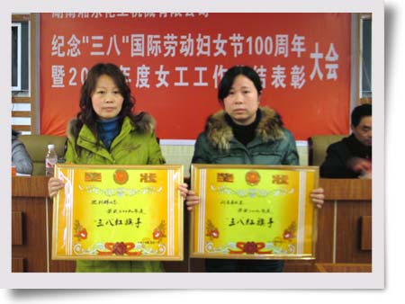 大會(huì)還對(duì)被評(píng)為公司2009年度“三八”紅旗手的沈利群等2名同志、楊松軍等10名先進(jìn)女工進(jìn)行了表彰。