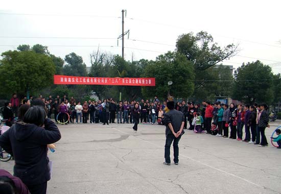 在“三八”國(guó)際勞動(dòng)?jì)D女節(jié)來臨之際,湖南湘東化工機(jī)械有限公司以“健康、和諧、溫馨”為主題,開展了內(nèi)容豐富、形式多樣的系列慶;顒(dòng)。3月13日,公司組織女工進(jìn)行了轉(zhuǎn)呼啦圈、摸耳轉(zhuǎn)圈、跳繩、雙腳跳等組合趣味接力賽活動(dòng)。這些喜聞樂見的活動(dòng)不僅拉近了員工的距離,增強(qiáng)了凝聚力,而且進(jìn)一步激勵(lì)了廣大女工投身工作的積極性,很好地調(diào)節(jié)了員工身心健康,豐富了女工的節(jié)日生活。整個(gè)活動(dòng)歡樂有趣,笑聲不斷,精彩紛呈,高潮迭起,充分展示了湘東化機(jī)新時(shí)代女工健康向上、充滿活力的精神面貌。