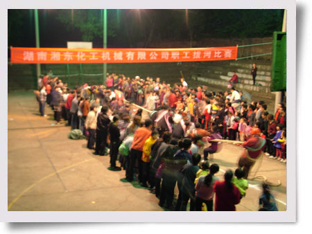 2010年4月23日晚,湖南湘東化工機(jī)械有限公司舉行男女職工混合拔河比賽,旨在培養(yǎng)員工的團(tuán)隊精神,營造和諧企業(yè)團(tuán)隊,增強(qiáng)企業(yè)的凝聚力和戰(zhàn)斗力。 多年來,湘東化機(jī)注重加強(qiáng)企業(yè)精神和企業(yè)文化建設(shè),豐富廣大職工業(yè)余文體生活,堅持每季度至少舉行一次文體活動,投資20余萬元資金購置健身器材并在生活區(qū)建設(shè)3個健身場所,增強(qiáng)職工體質(zhì),充分調(diào)動職工工作熱情。 拔河比賽在一片熱鬧聲中拉開了帷幕,8個隊120名隊員參加比賽,經(jīng)過激烈的角逐,容器分會取得了桂冠。(王慧卉)