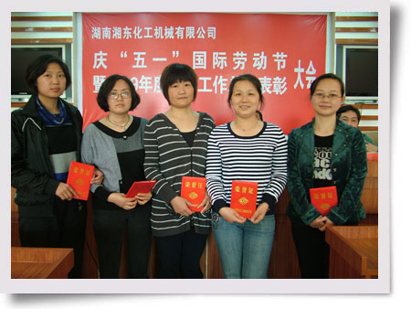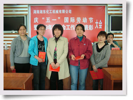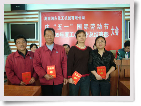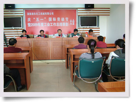 2010年4月29日,湖南湘東化工機(jī)械有限公司召開(kāi)2009年度工會(huì)工作總結(jié)大會(huì),熱烈慶祝五一國(guó)際勞動(dòng)節(jié)。 會(huì)上,黨委書(shū)記、公司常務(wù)副總經(jīng)理兼工會(huì)主席林德晃作了題為《堅(jiān)定信心,共克時(shí)艱,攜手再創(chuàng)新輝煌》的報(bào)告,充分地肯定了工會(huì)組織2009年的工作成績(jī),同時(shí)對(duì)2010年提出了新的工作要求。他要求工會(huì)組織應(yīng)多開(kāi)展文體活動(dòng)、勞動(dòng)競(jìng)賽和技能大賽等活動(dòng),豐富職工業(yè)務(wù)生活,充分發(fā)揮黨委、行政聯(lián)系職工群眾的橋梁和紐帶作用,進(jìn)一步加強(qiáng)職工民主管理,全面提高職工素質(zhì),維護(hù)職工合法權(quán)益,落實(shí)困難職工幫扶職責(zé),加強(qiáng)工會(huì)組織自身建設(shè),不斷創(chuàng)新,進(jìn)一步提高管理水平和服務(wù)意識(shí),為公司的建設(shè)和發(fā)展、為提高職工的勞動(dòng)積極性和增強(qiáng)企業(yè)凝聚力努力作出新貢獻(xiàn)。 最后,黨委委員、公司副總經(jīng)理姜衡陽(yáng)宣讀了《關(guān)于表彰2009年度工會(huì)先進(jìn)集體和個(gè)人的決定》,對(duì)1個(gè)先進(jìn)工會(huì)分會(huì)汽輪機(jī)分會(huì),單雪山等20名工會(huì)積極分子進(jìn)行了表彰,同時(shí)號(hào)召全體員工以先進(jìn)為榜樣,學(xué)先進(jìn),爭(zhēng)先進(jìn),為公司發(fā)展建功立業(yè)。(王慧卉)