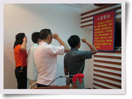 7月1日下午,湖南湘東化工機(jī)械有限公司舉行新黨員入黨宣誓儀式,新黨員在黨旗下莊嚴(yán)宣誓,“我志愿加入中國共產(chǎn)黨。。。。。!薄D壳,湘東化機(jī)共有黨員598人,其中,具備大專以上文化黨員136人,生產(chǎn)一線黨員110人。 湘東化機(jī)始終把基層黨組織建設(shè)作為組織工作重點(diǎn),圍繞“深入學(xué)習(xí)實(shí)踐科學(xué)發(fā)展觀,為黨旗增輝,促進(jìn)公司又好又快發(fā)展”這一主題,以慶祝黨的生日為契機(jī),組織開展 “爭先創(chuàng)優(yōu)”等形式多樣的活動,鼓勵(lì)廣大黨員積極投身于公司的各項(xiàng)工作,進(jìn)一步形成學(xué)榜樣、趕先進(jìn)的濃厚氛圍。 在新黨員入黨宣誓大會上,廣大黨員表示:要牢記黨的宗旨,保持共產(chǎn)黨員先進(jìn)性,繼承和發(fā)揚(yáng)黨的優(yōu)良傳統(tǒng)和作風(fēng),不斷提高自身的思想覺悟,團(tuán)結(jié)一心,努力工作,更好地發(fā)揮黨員的先鋒模范作用,為創(chuàng)造公司美好的明天而奮斗。湘東化機(jī)黨委書記林德晃殷切希望廣大黨員要時(shí)時(shí)刻刻嚴(yán)格要求自己,刻苦學(xué)習(xí),愛崗敬業(yè),積極進(jìn)取,甘于奉獻(xiàn),以滿腔的熱血,付諸于積極行動,為企業(yè)的建設(shè)發(fā)展努力奮斗,以自己無悔的青春向黨組織交上一份滿意的答卷。(王慧卉)