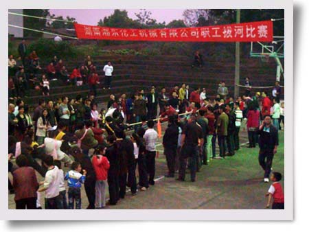 當(dāng)天晚上7點(diǎn),觀眾來到湘東化機(jī)生活區(qū)的燈光藍(lán)球場時,只見黑壓壓一片人群將賽場圍得水泄不通,哇,好熱鬧,“加油、加油、加油。。。。。!,拉拉隊(duì)的助威聲震天響,整個比賽氣氛一再被推向高潮。8個隊(duì)120名職工在比賽場上進(jìn)行激烈的角逐,隊(duì)員們的心就像那根拔河繩凝聚成一根繩,在領(lǐng)隊(duì)的精心組織下,在拉拉隊(duì)的助陣下,勁往一處使。經(jīng)過2個小時的初賽和決賽,汽輪機(jī)分會和機(jī)關(guān)分會分別奪取了冠、亞軍。
