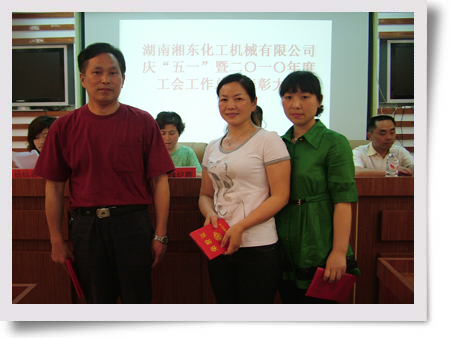 4月28日下午,湖南湘東化工機(jī)械有限公司召開2010年度工會工作總結(jié)表彰大會。公司副總經(jīng)理、工會負(fù)責(zé)人姜衡陽作了題為《履行職能、切實維權(quán)、努力開創(chuàng)工會工作新局面》的工作報告,慶祝五一國際勞動節(jié)的到來。 會上姜衡陽說,2010年度,工會在公司黨委的正確領(lǐng)導(dǎo)下,圍繞公司生產(chǎn)經(jīng)營目標(biāo),以民主管理為重點,依法維護(hù)職工合法權(quán)益,積極履行工會職能,充分發(fā)揮了工會組織作為黨政聯(lián)系職工群眾的橋梁和紐帶作用。尤其是關(guān)心員工工作落實到了實處:全年共慰問員工的病、婚、喪等事項119人次,慰問金2.27萬元;實施困難幫扶249名人次,發(fā)放春節(jié)送溫暖資金和物資16萬元;為12人大病救助1.6萬元;為743名員工繳納醫(yī)療互助補(bǔ)充保險金3.56萬元;為536名女職工購買“兩癌”保險金1.07萬元;對432戶城鎮(zhèn)獨生子女家庭進(jìn)行了摸底登記;夏季堅持兩個多月每晚送清涼飲料慰問一線加班人員;號召全體員工發(fā)揚(yáng)人道主義精神,為四川玉樹災(zāi)區(qū)捐款1.74萬元;關(guān)心勞模的生活,組織勞模及其家屬出境外旅游;認(rèn)真做好勞動爭議調(diào)解、勞動能力鑒定工作;開展游藝、 趣味接力賽、撥河比賽等豐富多彩的文體活動,增強(qiáng)員工身心健康和員工隊伍的凝聚力;利用宣傳櫥窗對涉及員工切身利益的事項堅持企務(wù)公開。 同時,姜衡陽要求工會組織在新的一年以科學(xué)發(fā)展觀為指導(dǎo),進(jìn)一步解放思想,勵精圖治,奮發(fā)圖強(qiáng),把工會工作提高到一個新的水平,為公司和諧發(fā)展作出更大的貢獻(xiàn)。 最后,大會對先進(jìn)集體和先進(jìn)個人進(jìn)行了表彰。(王慧卉)