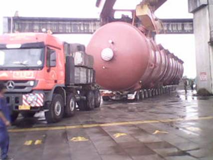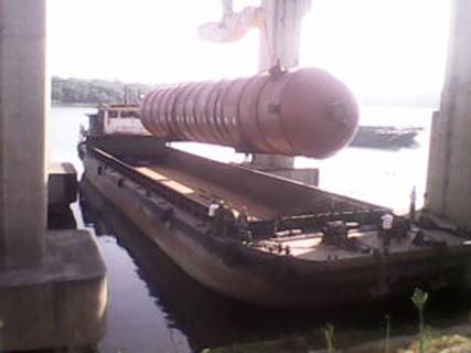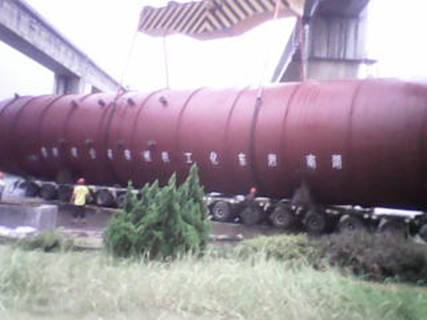 2012年7月16日,在湖南衡陽白沙洲千噸級(jí)碼頭,由我公司制造完工的上海金山石化項(xiàng)目丙烯塔順利發(fā)貨。該設(shè)備共兩臺(tái),每臺(tái)總長度為65000mm,直徑為5500mm,重量為566噸。