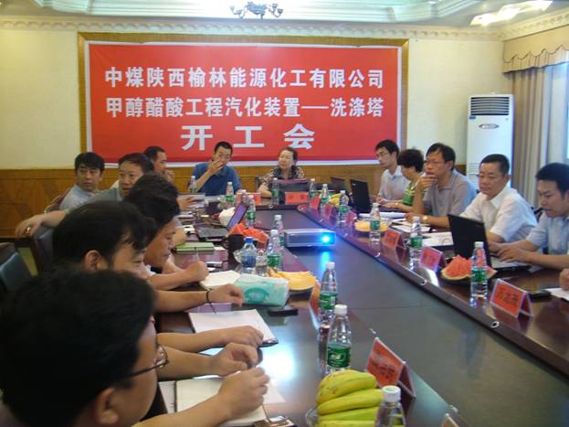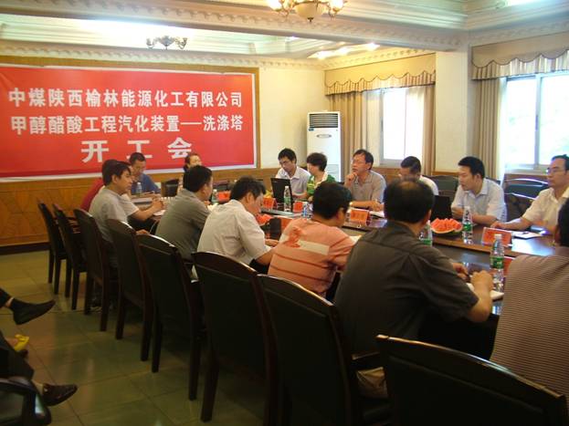 2012年7月19日,在我公司二樓會議室舉行了中煤陜西榆林能源化工有限公司甲醇醋酸工程汽化裝置—洗滌塔開工會儀式。中煤陜西榆林能源化工有限公司副總工程師高亞樓、項目經(jīng)理周正龍、生產(chǎn)經(jīng)理王春生、機動部副經(jīng)理萬龍茂、項目管理部副經(jīng)理劉淑,中國天辰工程有限公司采購經(jīng)理王大志、設(shè)計經(jīng)理龔劍、采購經(jīng)理崔清云、驗收經(jīng)理許金,三方監(jiān)理李輝副總工程師參加開工會,我公司副總經(jīng)理徐元欽、廖勇、總工程師文建偉,公司相關(guān)生產(chǎn)單位、職能部門負(fù)責(zé)人參加了會議。